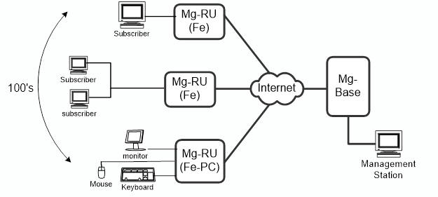 The Mg-Fe-PC implements the functionality provided by the Mg-Fe with an internal, physically secured PC running captive applications in kiosk mode. This offers a more secure package compared to employing external subscriber devices (PCs).